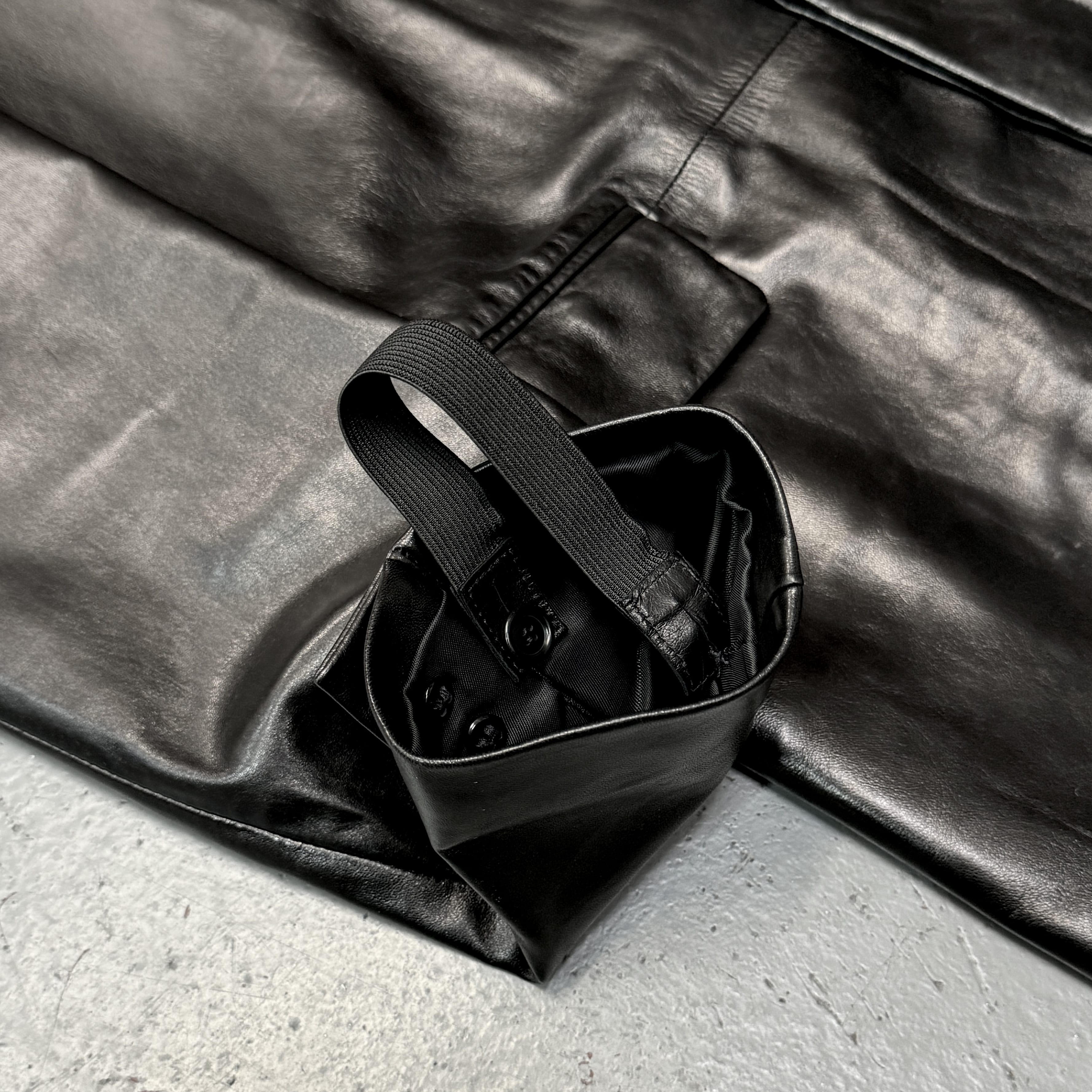 - Made out of a high polished black leather, sublte to the touch