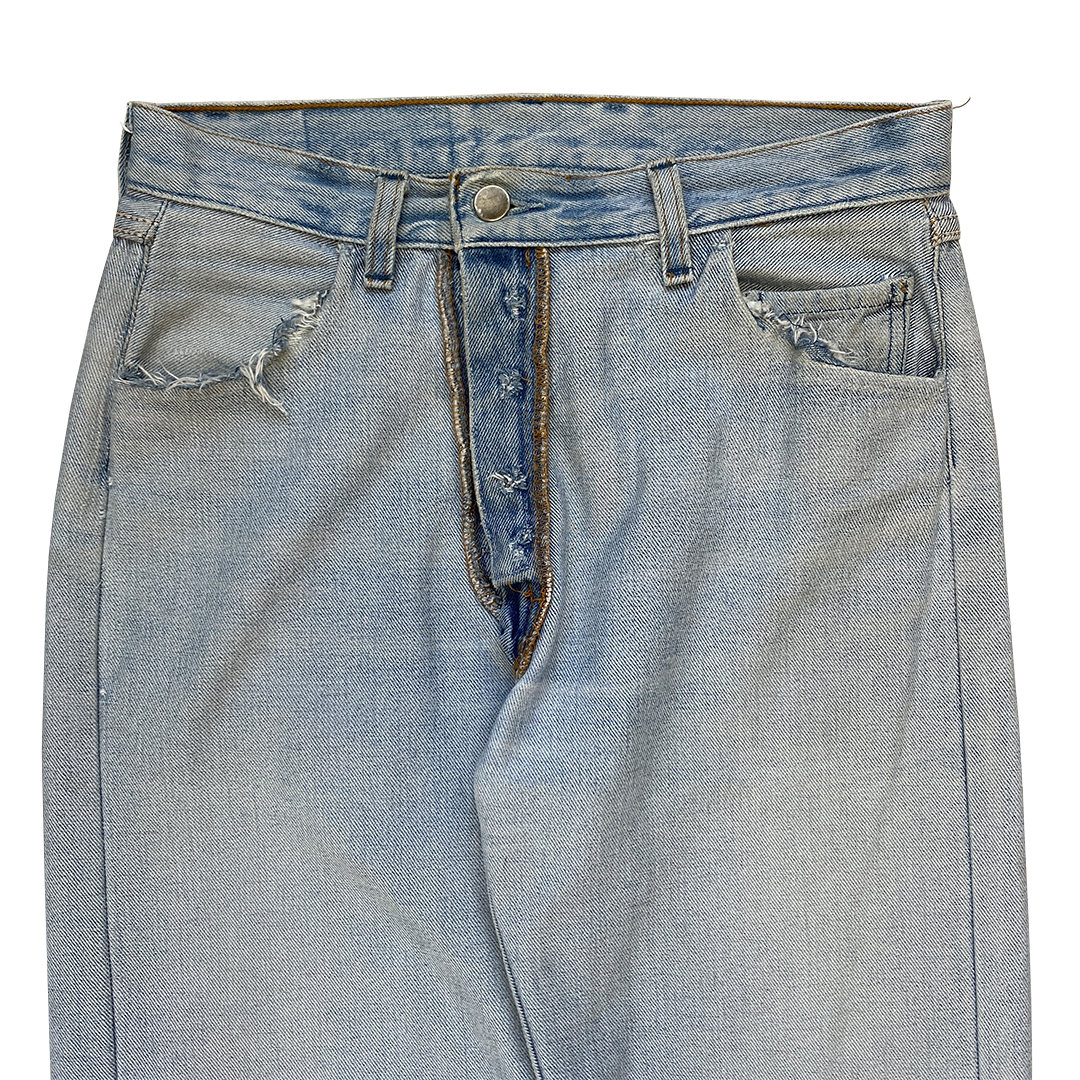 There are multiple variations for the artisanal denim produced under Martin’s era, this iteration is considerably harder to come by. Taking a vintage pair of Levi’s jeans found in a Parisian flea market, the denim has been turned inside out and pockets have been constructed to the flip side allowing for functional use. Fiocchi snap button replace the button fly closure and distressing has been added to the pocket and button hem.